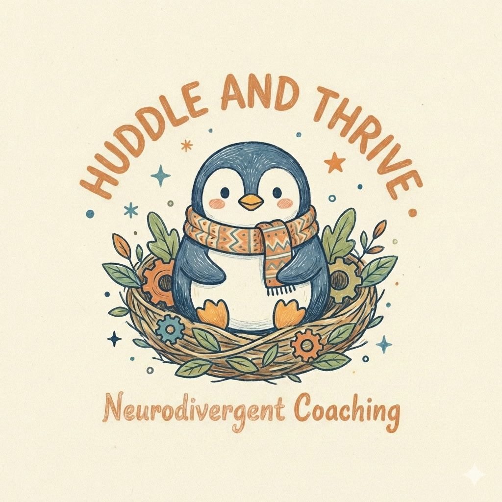 Sign up to receive a poster on coping strategies to keep your neurodivergent self going throughout your daily life. Also news about Huddle and Thrive.